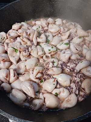 Hoy los he acompañado con unas patas de pulpo cocido y pasado por la plancha con un poco de pimentón.